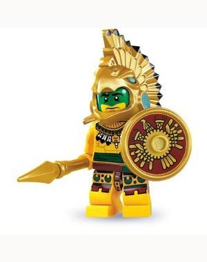 The Aztec Warrior is a Collectable Minifigure released in 2017 as one of the sixteen minifigures from 8831 Minifigures Series 7. He has a large, gold, birdlike headdress, and a serious, green-painted face. He wears tribal dressings, and has a muscular torso.